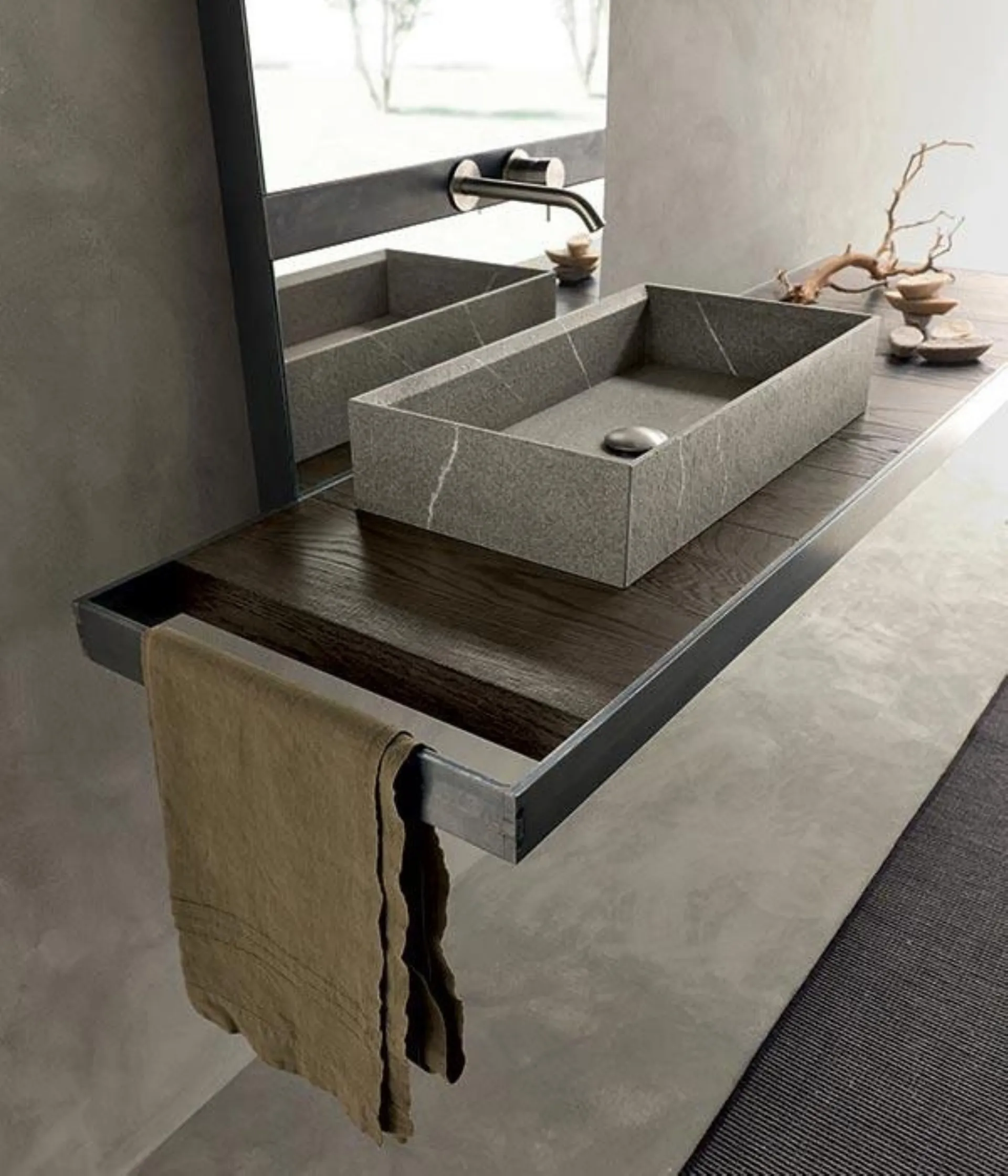 Mobili bagno sospesi in legno del brand Modulnova bagni: clicca e scopri l'arredo bagno design Surf 03 per il bagno di casa.