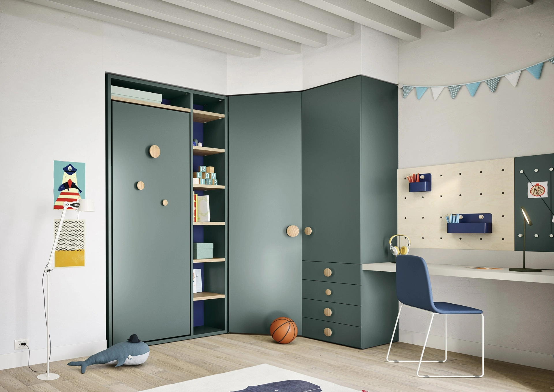 I nostri bambini trascorrono parecchie ore delle loro giornate nelle loro camere da letto: rendile adatte per dedicarsi alla scuola, giocare e rilassarsi ogni giorno. Con la Cameretta Salvaspazio Twiddy di Nidi in melaminico ti garantirai un perfetto accordo di ergonomia e sicurezza, ideale per la stanza dei tuoi figli. Presentiamo nel nostro showroom svariate Camerette salvaspazio moderne per bambini del marchio, ideali per accompagnarli durante la loro crescita. In negozio ti seguiamo dalla scelta dell'arredamento per la camera alla progettazione del luogo in cui i tuoi bimbi cresceranno, giocando e sognando.