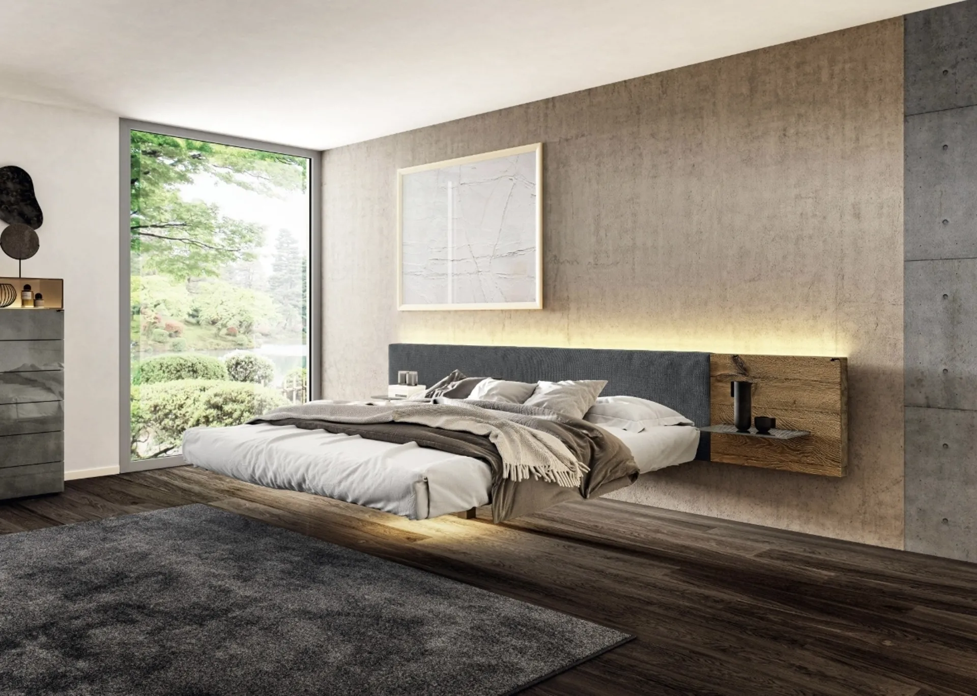 Durante l'acquisto della giusta tipologia di letto, valuta con attenzione le sue dimensioni, le finiture, la forma e il suo stile rispetto al resto dell'arredo. Scegli cromie e finiture e realizza il tuo progetto d’arredo nella zona notte, progettandola proprio come l'avevi immaginata. Se vuoi una soluzione in legno, il modello presente in foto è contraddistinto da materiali pregiati e forme decise, che invitano a trascorrere un riposo sereno e rigenerante. Il Letto sospeso Fluttua 1627 di Lago crea uno spazio familiare e confortevole in ogni zona notte, garantendoti il relax totale e uno stile unico. I Letti matrimoniali con testiera dell'azienda, specialista nella produzione di Arredamento Casa per la zona notte, sono progettati per essere abbinati a mobili ed elementi accessori di ogni tipo, come armadi e comò, abat jour e piantane.