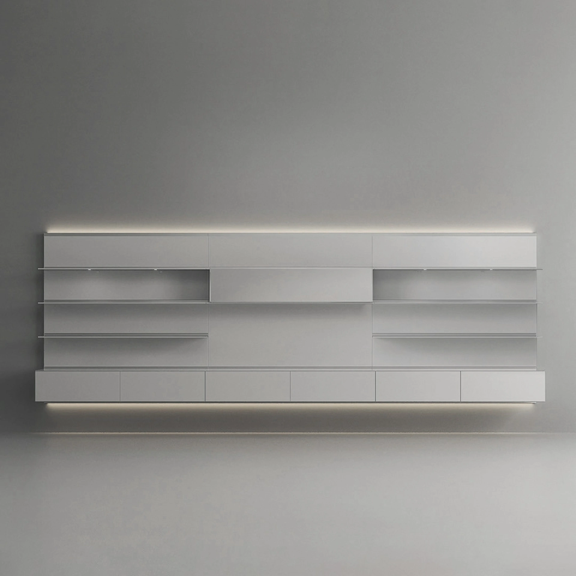 Vuoi arredare un living pratico e dinamico? Ti presentiamo la parete attrezzata Abacus Grigio Chiaro Rimadesio dalle forme decise moderne.