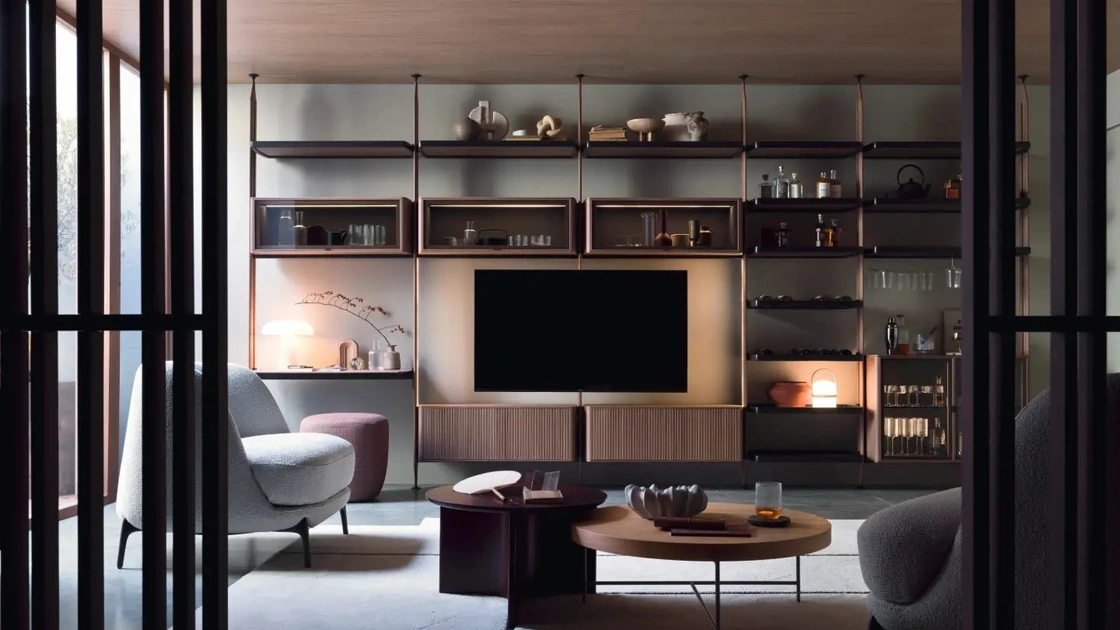 Se desideri completare un living operativo e pratico dalle linee moderne, ti presentiamo la parete attrezzata Dedalo Novamobili.