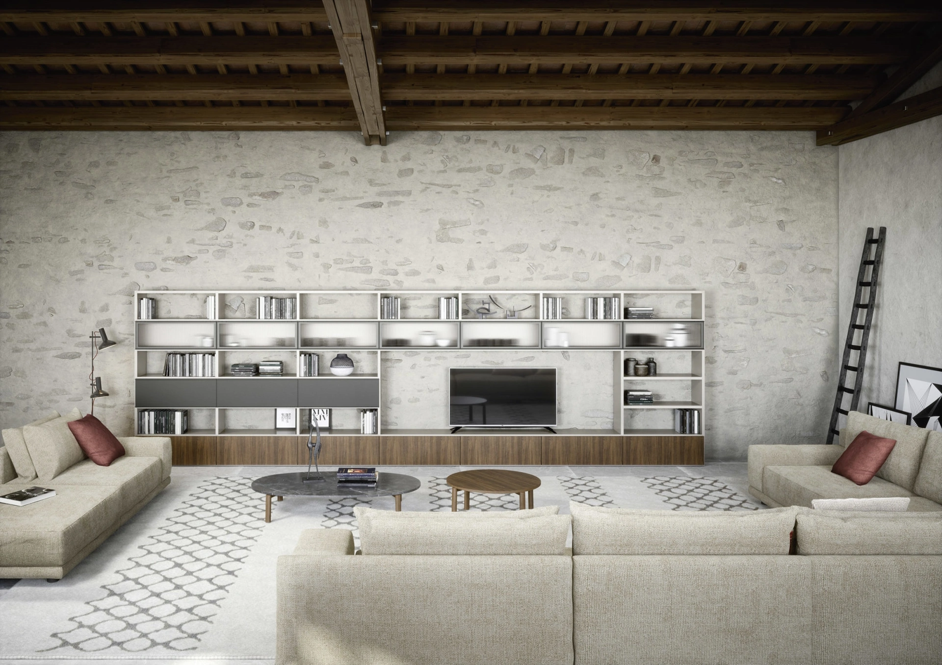 La Parete Attrezzata Wall 30 05 di Novamobili nell'immagine, con finitura in laccato opaco, risolve le più particolari problematiche abitative di stile e spazio senza rinunciare alla ricerca estetica. Anche in un soggiorno di dimensioni contenute, questo tipo di arredo riesce a ottimizzare gli spazi valorizzando ogni angolo e assicurando l'alta componibilità tipica delle soluzioni moderne. Un po’ librerie, un po’ mobili contenitori ed espositori: le Pareti Attrezzate sono ideali per organizzare uno spazio operativo e pratico. Questa proposta rappresenta tutta l'eccellenza che il marchio garantisce grazie a pluriennale competenza e grande dedizione nel campo dell'arredo e del design.
