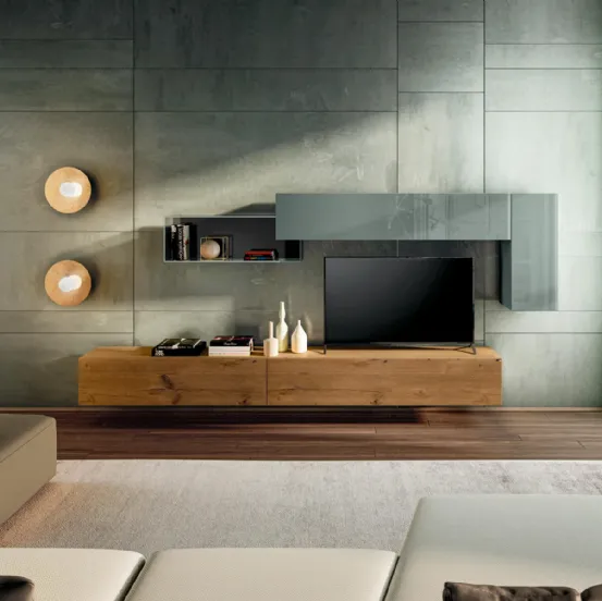 Vuoi progettare un soggiorno operativo e pratico? Ti presentiamo la parete attrezzata 30mm 1205 Lago dalle linee decise moderne.