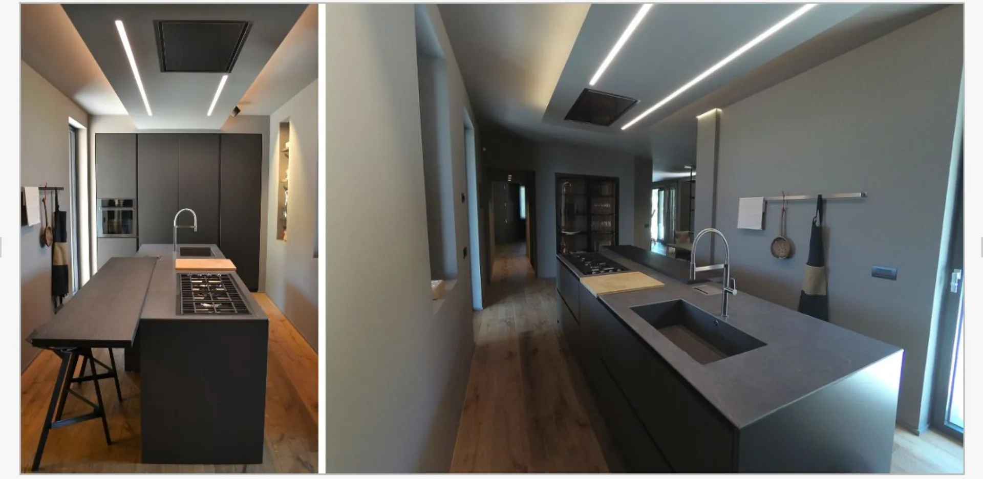 Un progetto di forte personalità che coniuga volumi e materiali in modo sapiente. Estremamente utile l'illuminazione a led con profili raso muro, materiali innovativi rendono la cucina bella e funzionale. nuovi sistemi di disegnare caminetti privi di canna fumaria, pavimenti in legno rendono l'ambiente caldo e accogliente. Un progetto seguito dall'inizio alla fine totalmente dal nostro personale qualificato. La scelta dei pavimenti, la colorazione delle pareti, lo studio dell'illuminazione, alla scelta delle tende.